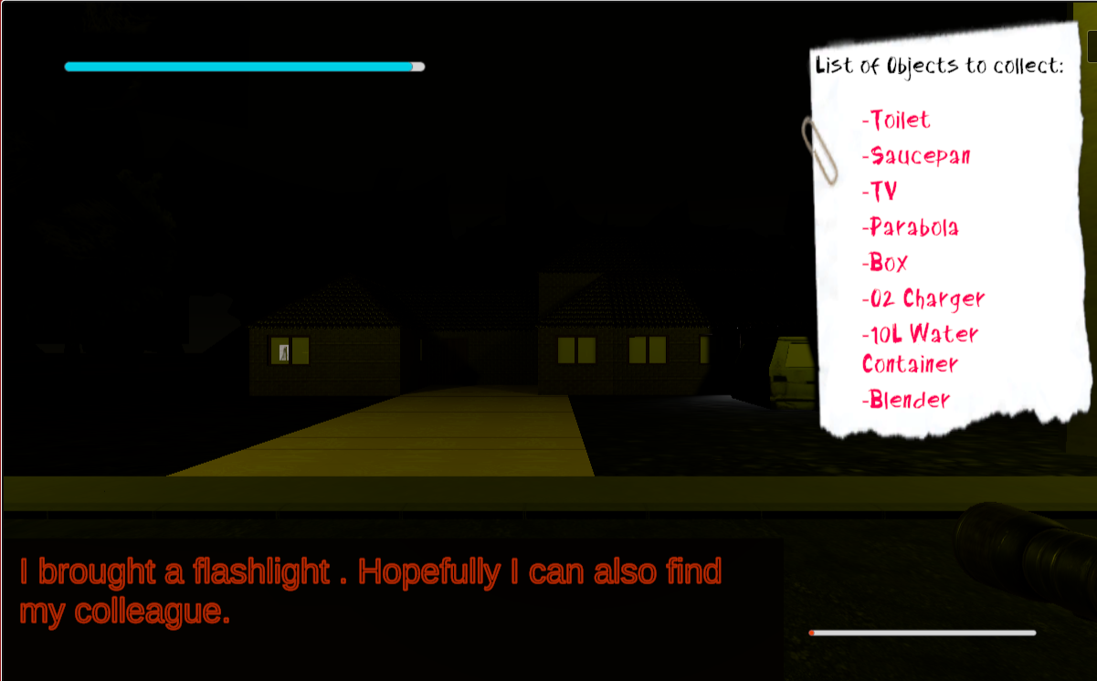 You’ve come to retrieve the things you forgot at your colleague’s house, but something went horribly wrong. Among the items you lost is a dangerous chemical, which spilled on your colleague's dog, transforming it into a grotesque monster that devoured its owner. Now, you must navigate through the dark, eerie house to collect your belongings—but the creature is still lurking, and it’s hunting you.